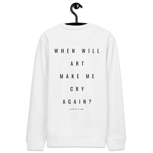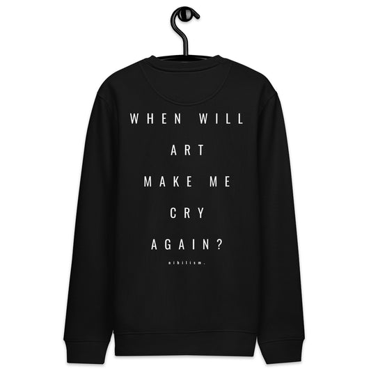 Unisex eco sweatshirt nihilism strip "When will art make me cry again?"