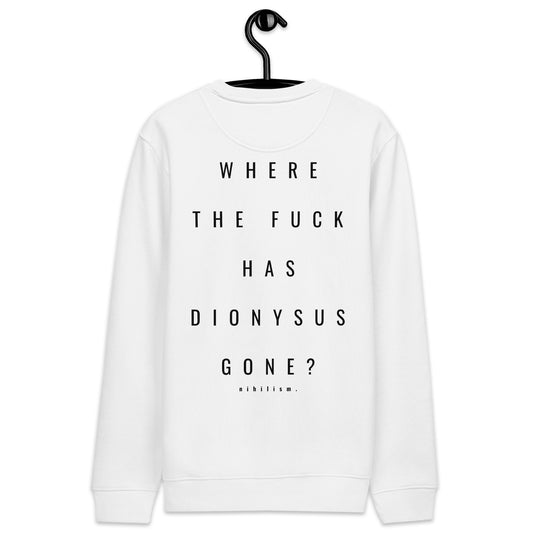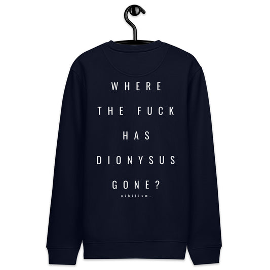 Unisex eco sweatshirt nihilism "Where the fuck has Dionysus gone?"